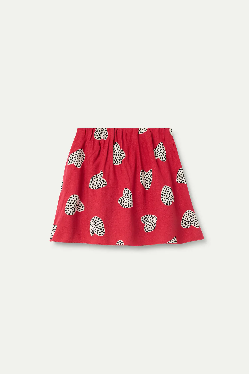 Falda corta de niña con tejido 100% algodón con estampado Harmony Red. Cintura elástica de tiro fijo. Ligeros pliegues. Forro interior