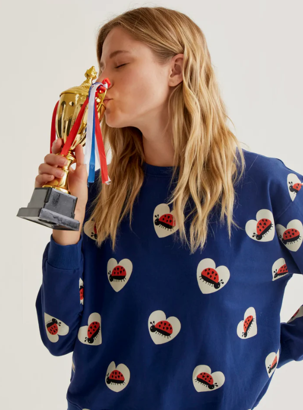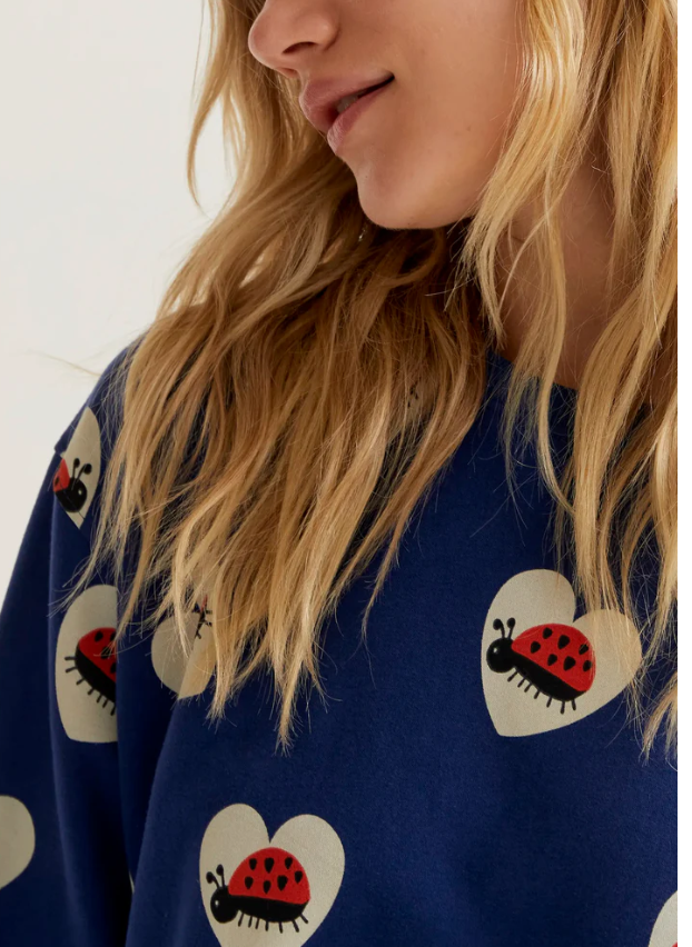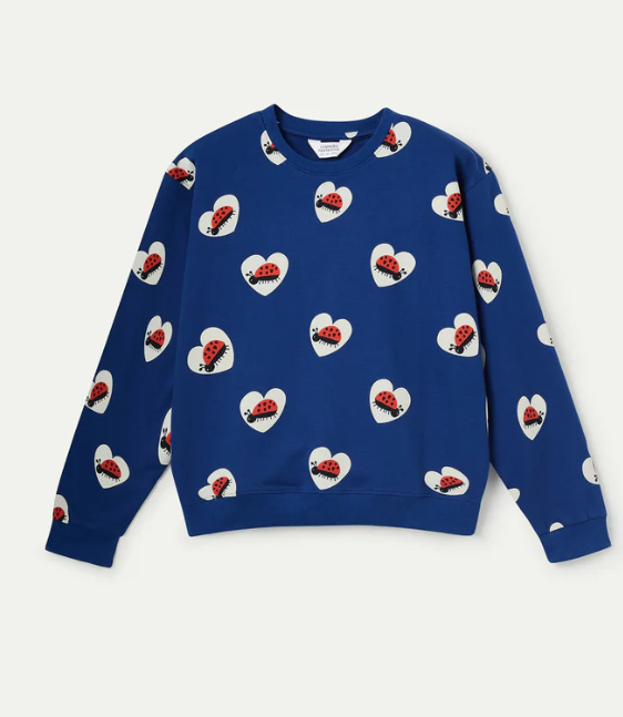Sudadera de tejido 100% algodón con estampado coccinella. Cuello redondo y manga larga. Detalles acabados en rib. La modelo mide 177 cm y lleva la talla